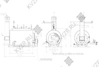 К фронтовой плите паровых котлов КВ 300 крепится воздуховод и вентилятор для подачи воздуха в топку котлоагрегата под слоевую решетку. На задней крышке агрегата в основании дымовой трубы выполнен предохранительный взрывной клапан. Образующиеся в топочной камере продукты сгорания проходят конвективный пучок труб и выводятся через трубу дымовую, установленную на корпусе в хвостовой части установки. При работе круглый котел паровой КВ 300 подпитывается водой для образования пара через штуцер. Подпитка ведется из питательного бака насосом через соединительную арматуру. На трубопроводе подпитки агрегата водой должно быть установлено запорное устройство и обратный клапан. Запорное устройство располагается между котлоагрегатом и обратным клапаном.